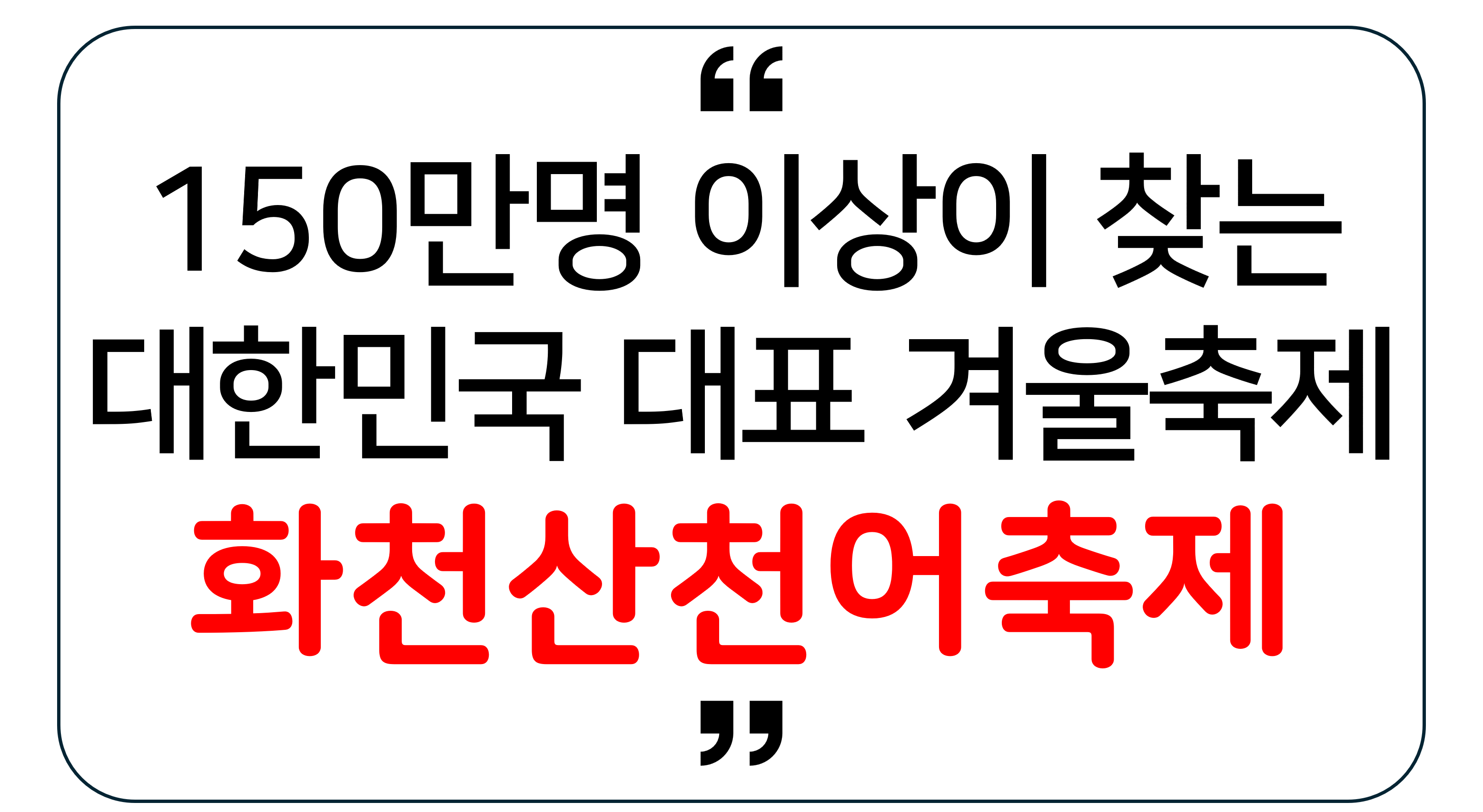 2025 얼음나라 화천산천어축제는 대한민국이 가진 새로운 문화유산중 하나로, "세계 겨울의 7대 불가사의" 이자, "세계 4대 겨울축제"로 문화체육관광부가 선정한 '글로벌 축제' 입니다.